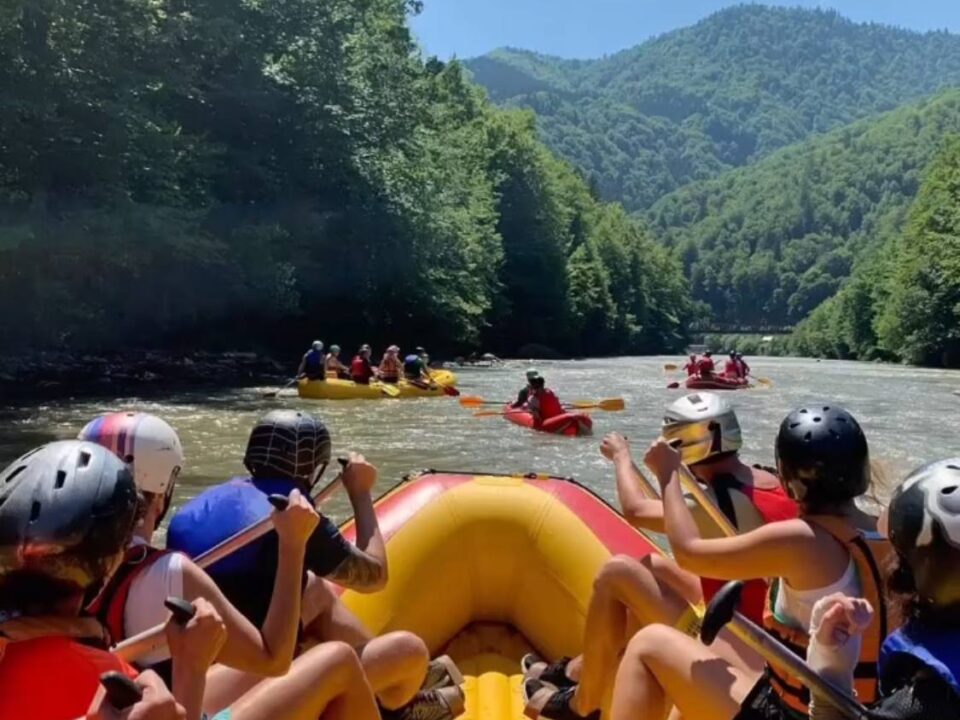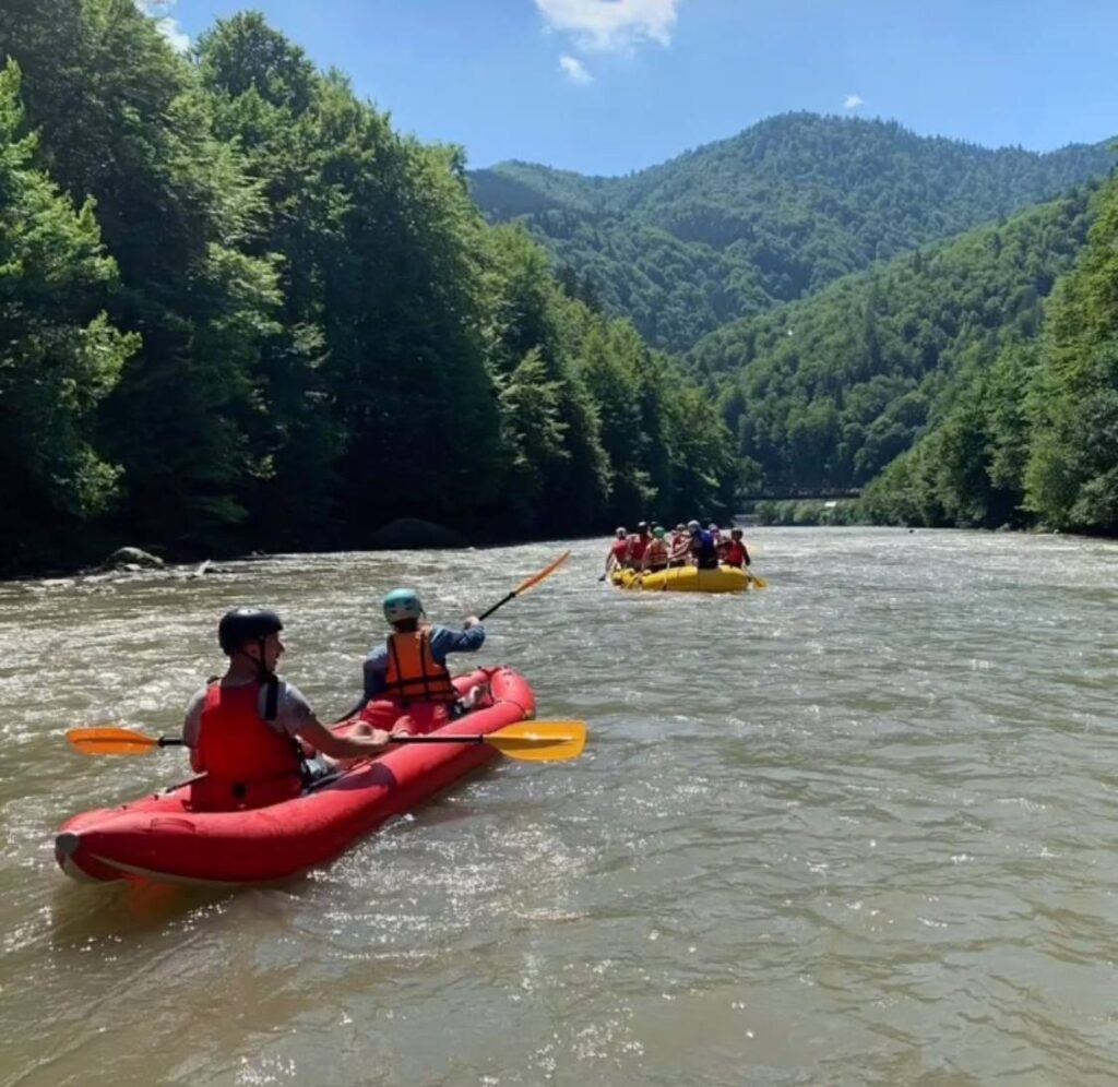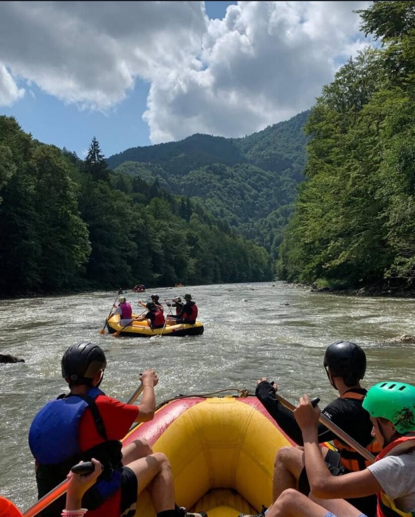 Умовно, тут знаходиться середина маршруту і закінчується спокійна ділянка сплаву. Починається вхід в “Зелений лісовий каньйон” – вузьку V – подібну долину з стрімкими скелястими схилами. Незабаром почнуться найбільші пороги на маршруті. Пропливаємо останній будинок села , який ми називаємо “Хата інтроверта”. Це окрема хатина біля лісу та річки, без жодних сусідів.
